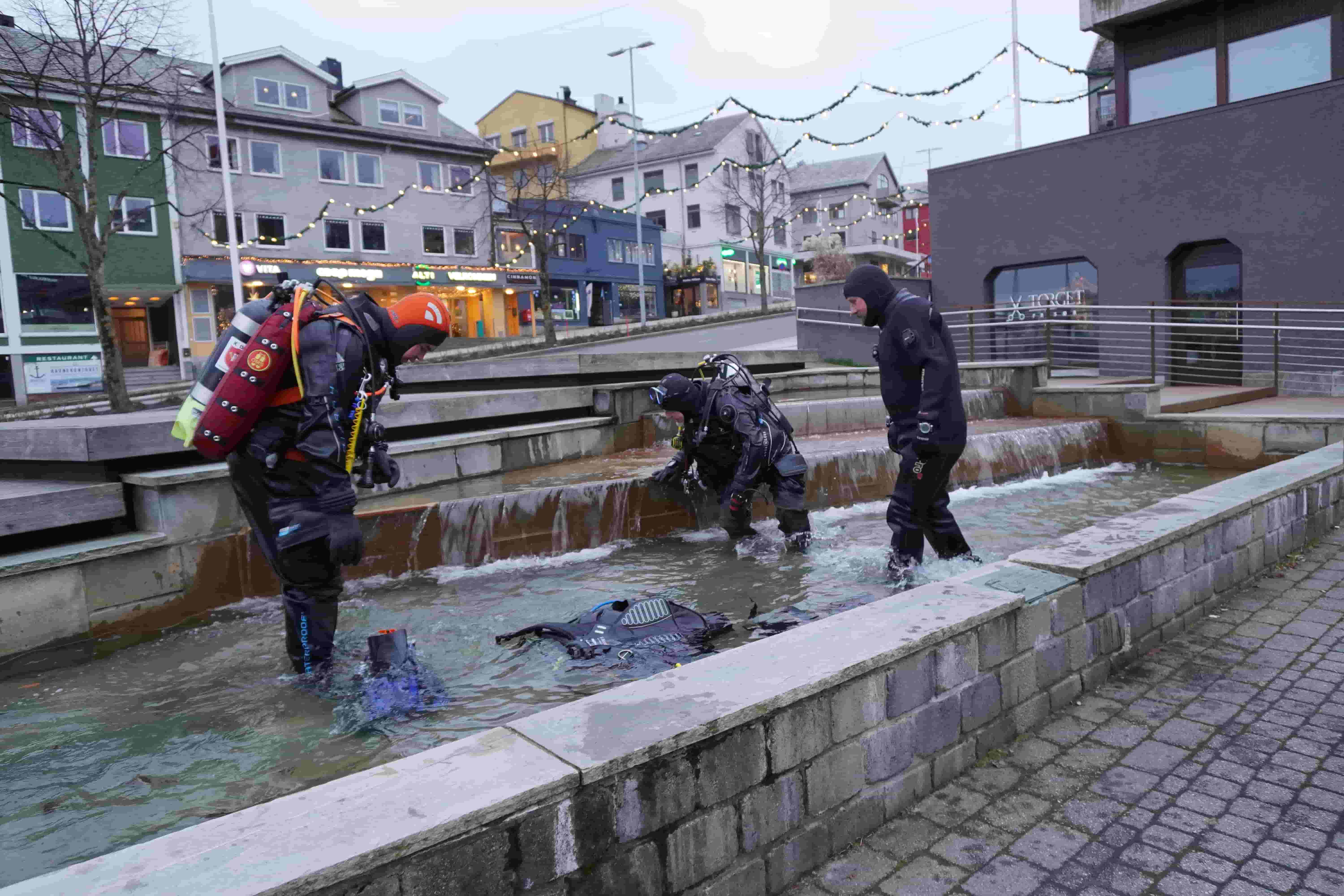 Etter dykket var det rett oppe og skylle utstyret i ferskvanns dammen nedenfor rådhuset.