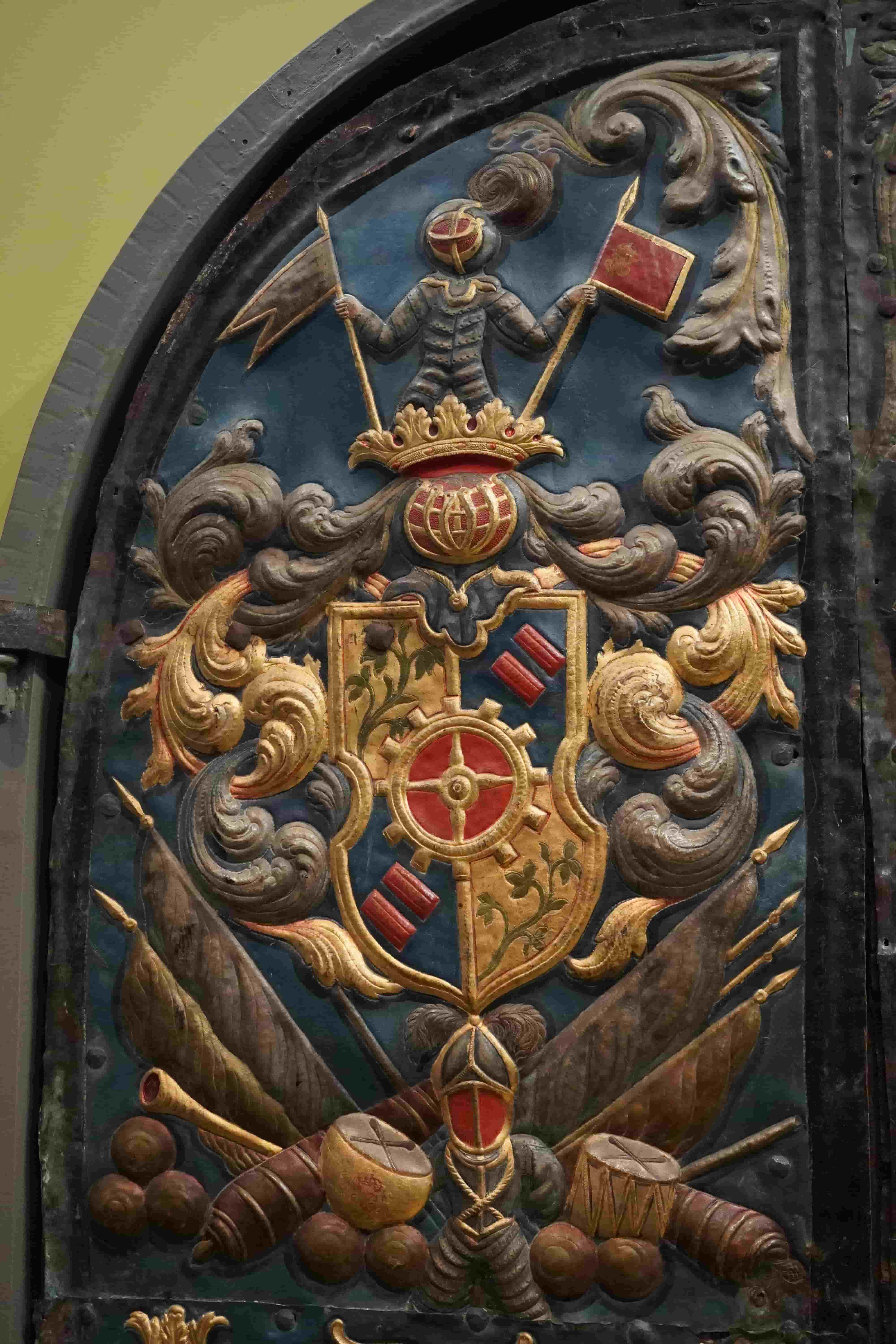 Portene inneholder også en rekke militære symboler: våpen, kuler og flere rustningsdetaljer. Rustningene er idealiserte og heraldiske, de likner altså ikke på samtidige rustninger som man ville brukt i samtidig strid. Rustninger var i stor grad blitt militærteknologisk utdaterte på dette tidspunktet med visse unntak som tungt kavaleri. Disse knytter gravminnet direkte til Caspar Friedrich von Mühlenphorts liv som offiser.