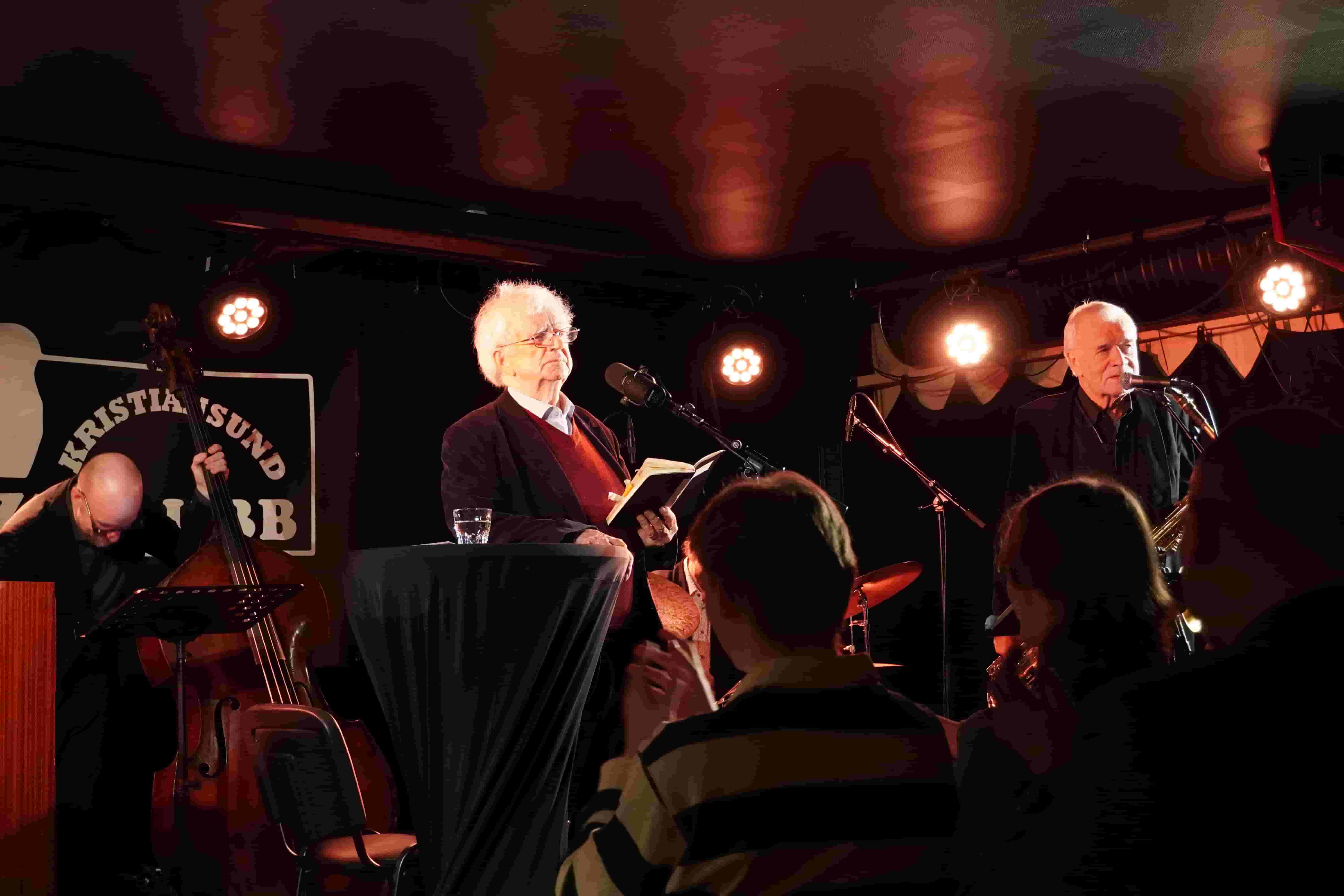 KRISTIANSUND, 19. mars 2026: På scenen i Kulturfabrikken står Jan Erik Vold – 86 år gammel, men fremdeles virksom i det han selv konsekvent omtaler som å «lese dikt». Rundt ham står jazzmusikere, gode historier, minner, og et publikum som spenner fra unge musikkelever til eldre tilhørere med flere tiår lange lytteerfaringer. Tidligere på dagen møter Applausen lyrikeren til samtale om forholdet mellom dikt, musikk og en økende grad av fremføring av dikt sammen med musikk.