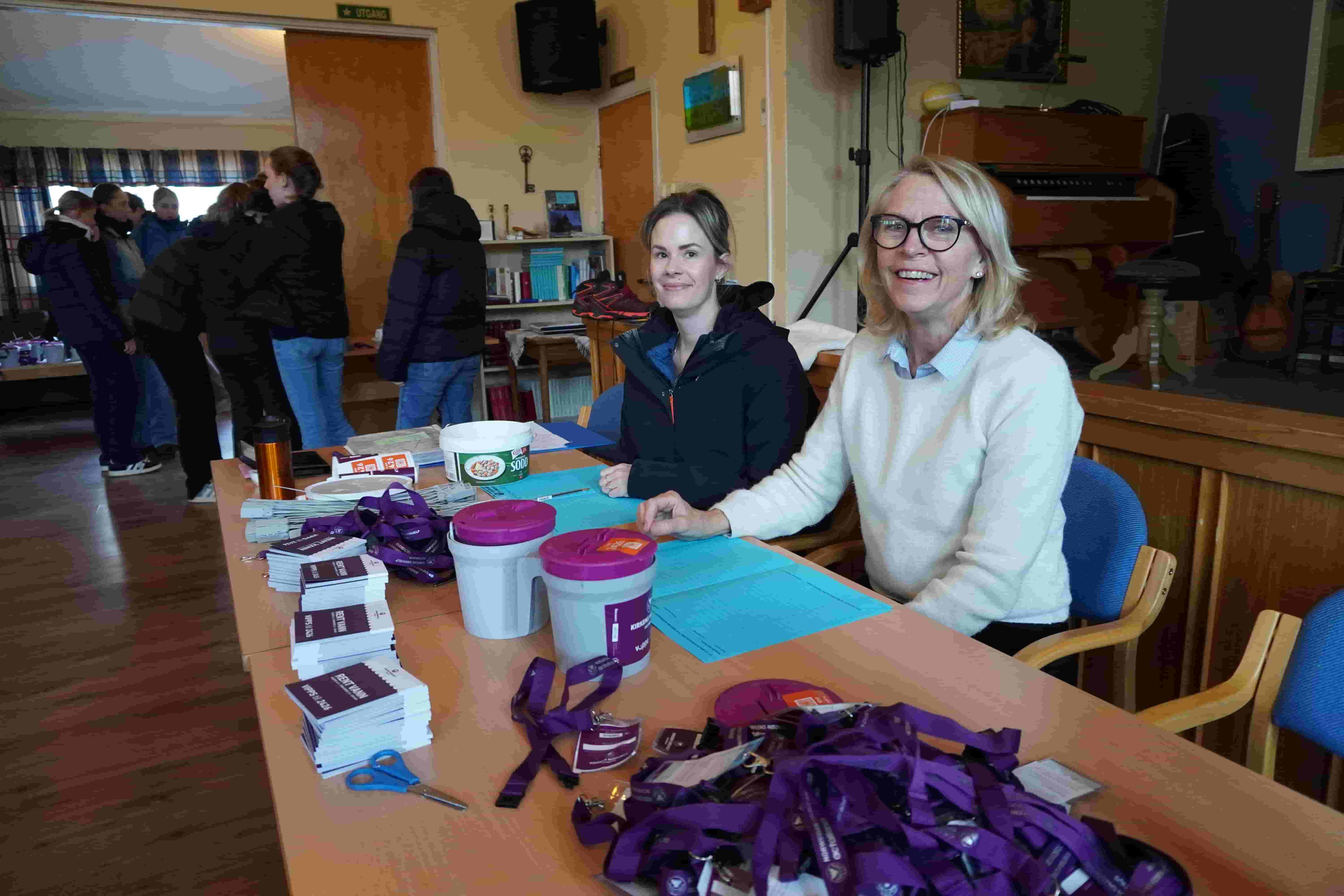 Ved et bord i menighetens lokaler sitter Lillian Ødegaard og Linda Farstad Fredriksen. De har hatt ansvar for organisering og oppfølging av aksjonen lokalt, og beskriver gjennomføringen som effektiv og oversiktlig.