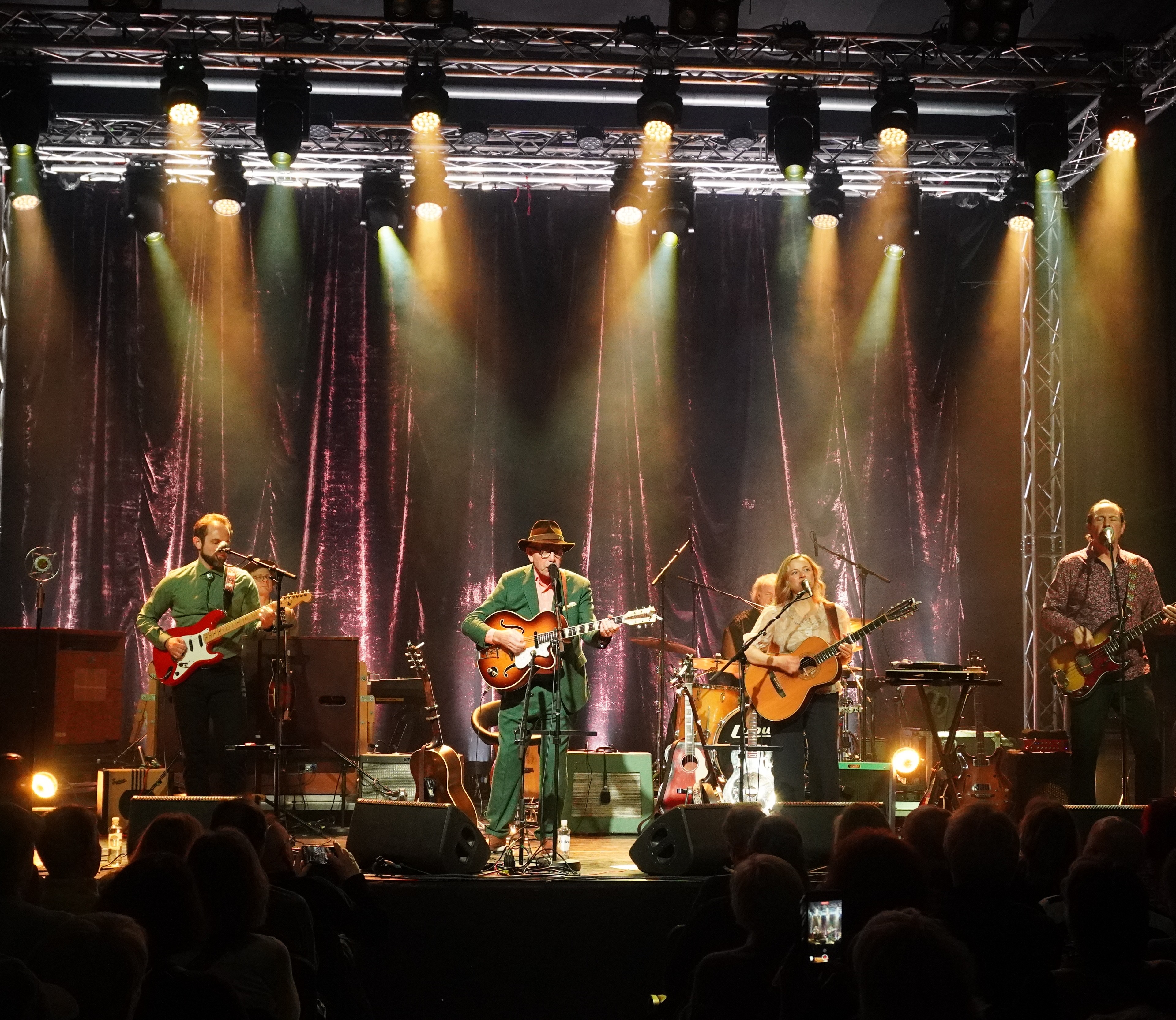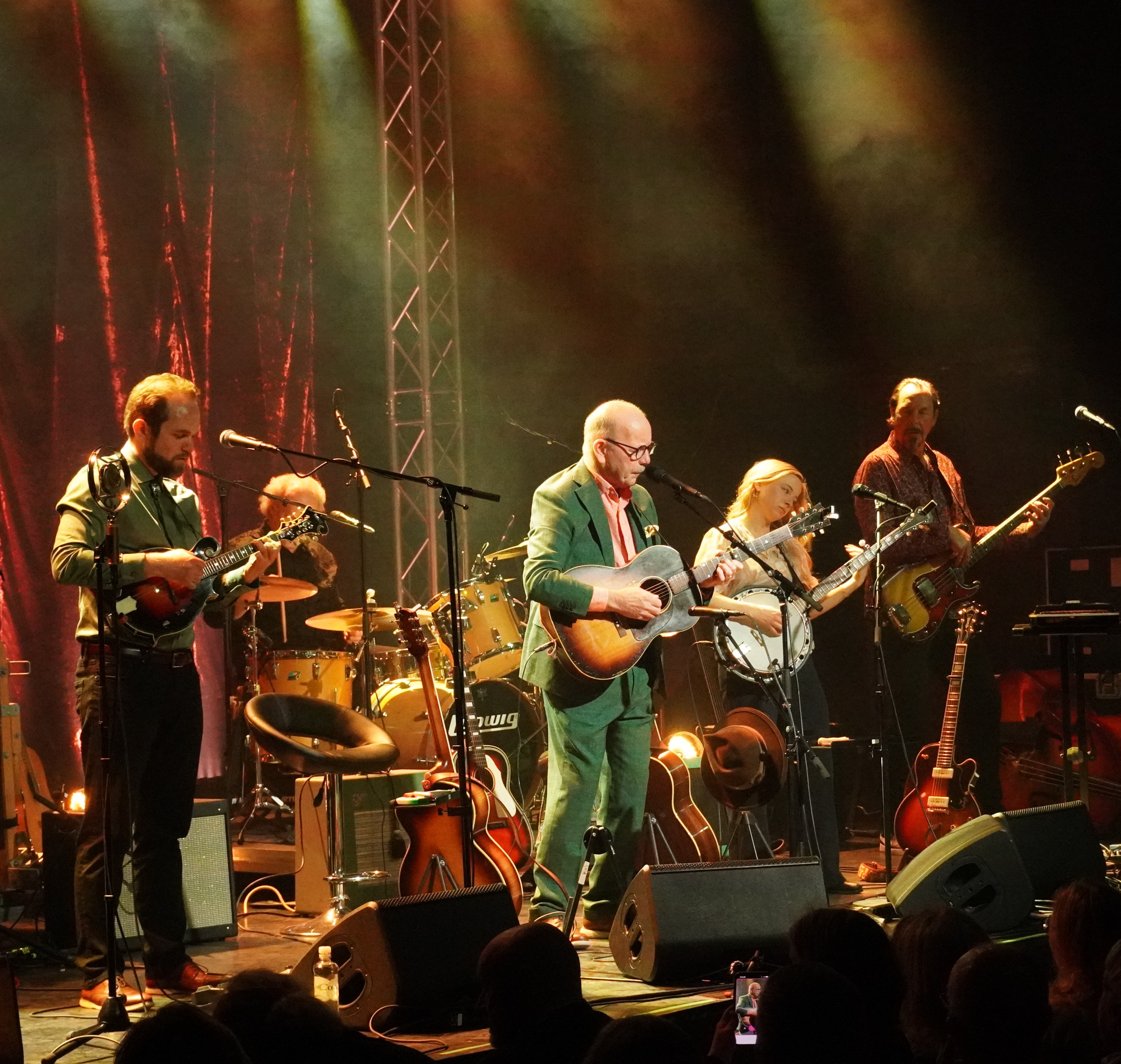 Jonas Fjeld har mange plateutgivelser bak seg, men han har også bidratt på andre sine utgivelser som komponist av melodier. Det kan umulig vært en enkel oppgave å skulle velge hvilke låter han skulle plukke ut til og spille på sin avskjedsturné, men med låter fra tolv forskjellige album vil jeg si han gav oss en smakebit av det meste. Sammen med sine fem svært dyktige musikere fikk vi en kveld med litt rocka country, som vi kjenne fra hans særegne lydbilde.