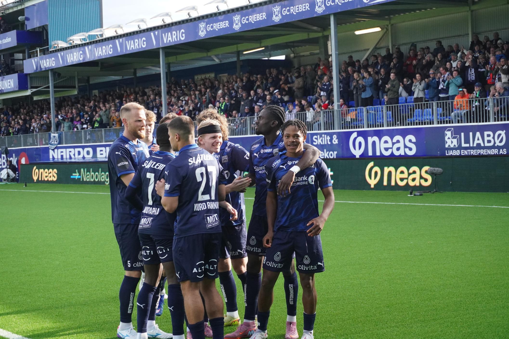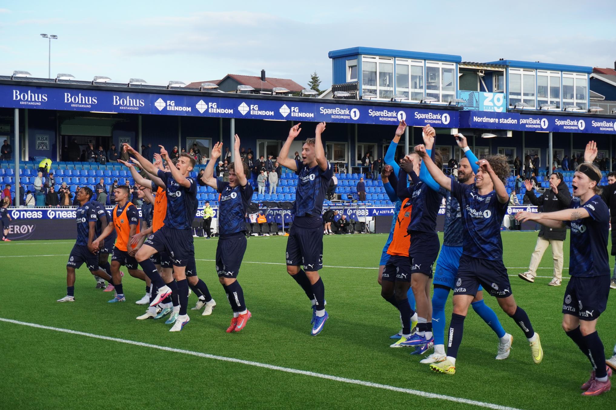 Det ble lagt til åtte minutter på grunn av denne hendelsen, og publikum reiste seg for å giKBK stående applaus. Tre viktige poeng hjem til Kristiansund. Dette var en kamp mellom to egentlig jevne lag. Etter en litt kjedelig første omgang ble det bedre i andre, i hvert fall sett med KBK briller. Alt i alt, god underholdning.