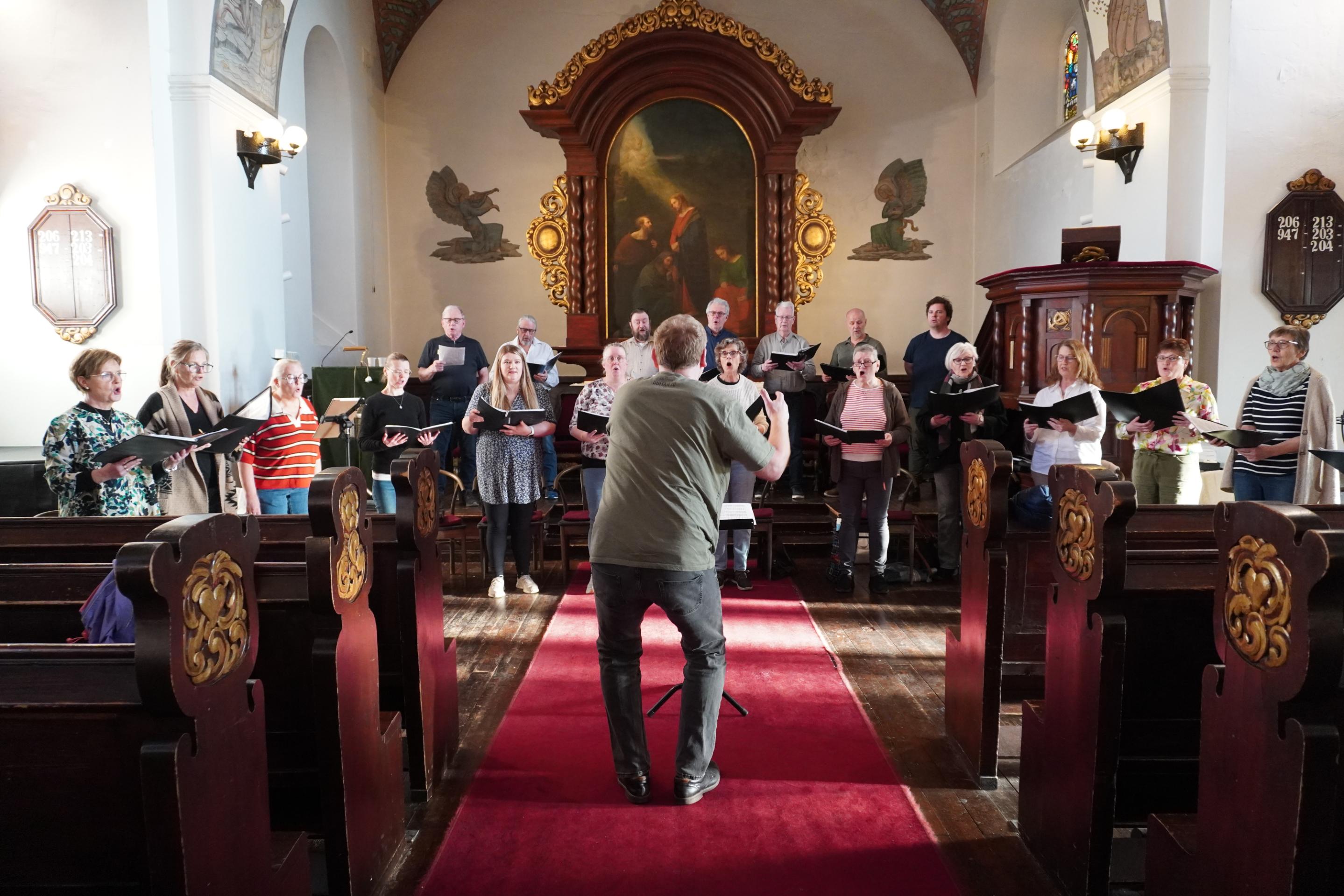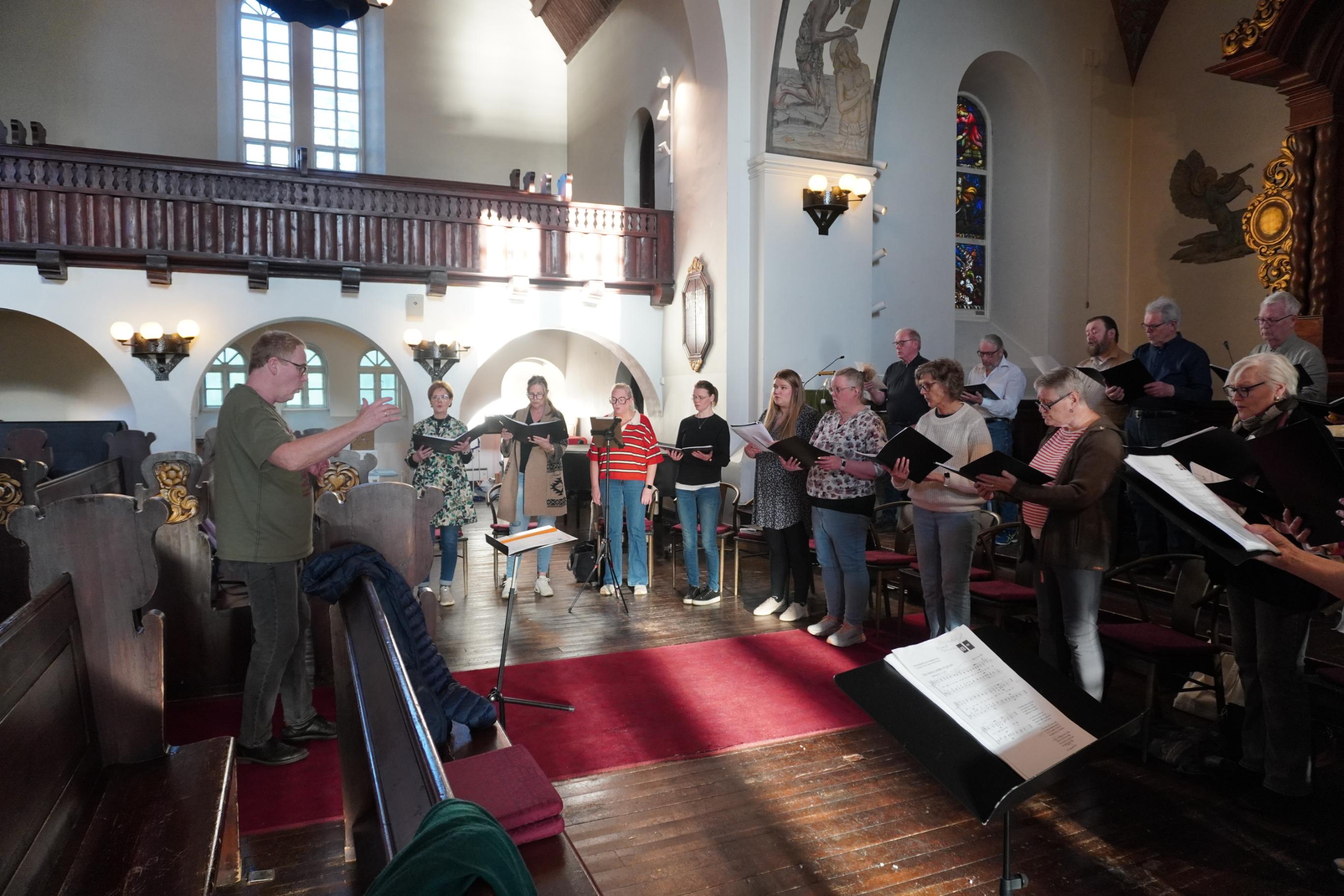 Kristiansund Kammerkor øver i Nordlandet Kirke. Applausen tok turen innom. Foto: Erik Aukan / Applausen