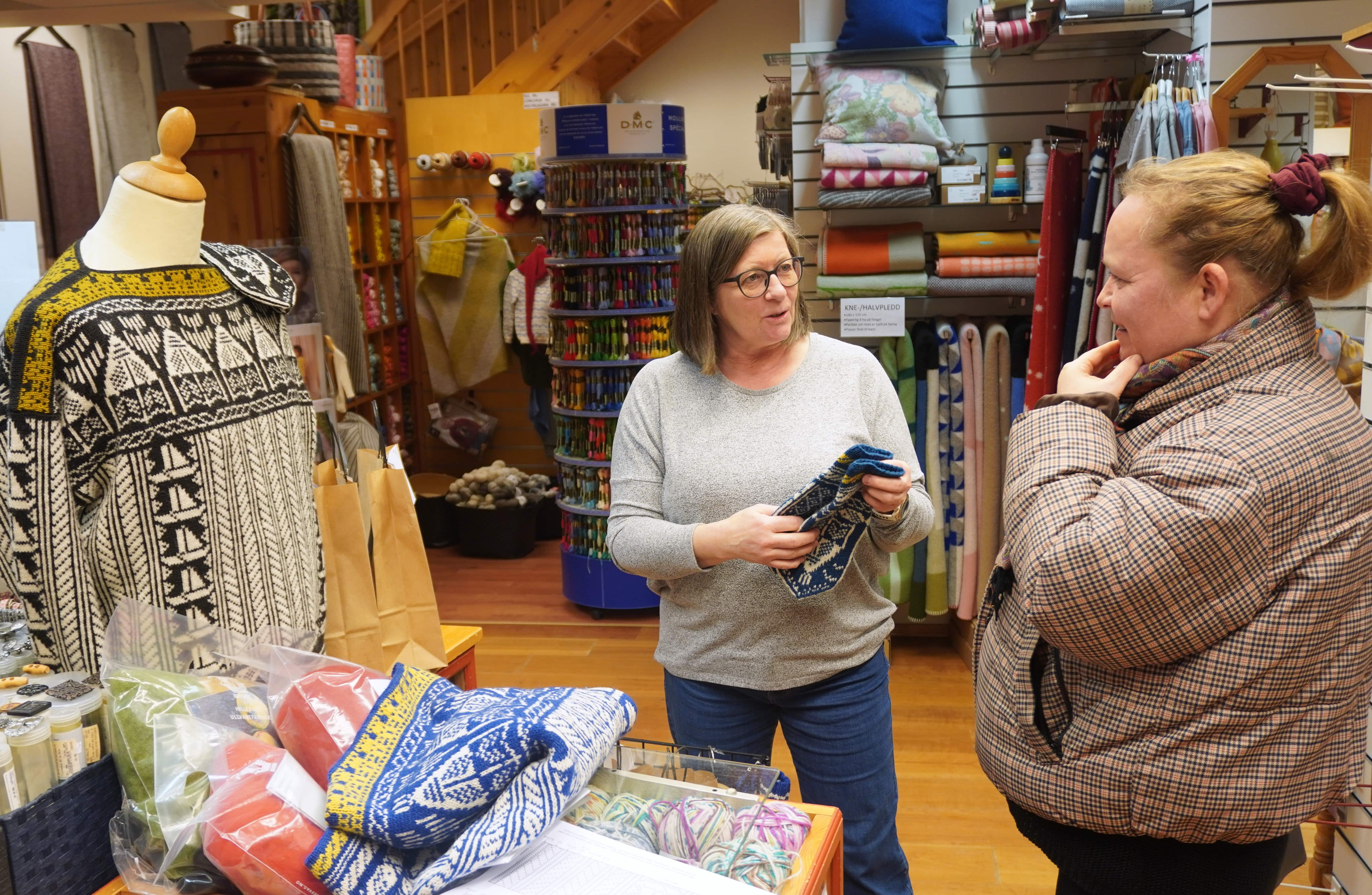 Mønsteret er ikke for nybegynnere, du skal vite hva du holder på med, forteller Hilde Vassgård hos Husfliden i Kristiansund. På Husfliden kan man få kjøpt pakke med mønster og garn. Vil du ha denne genseren må du strikke den selv eller få en strikke kyndig til å strikke den får deg.