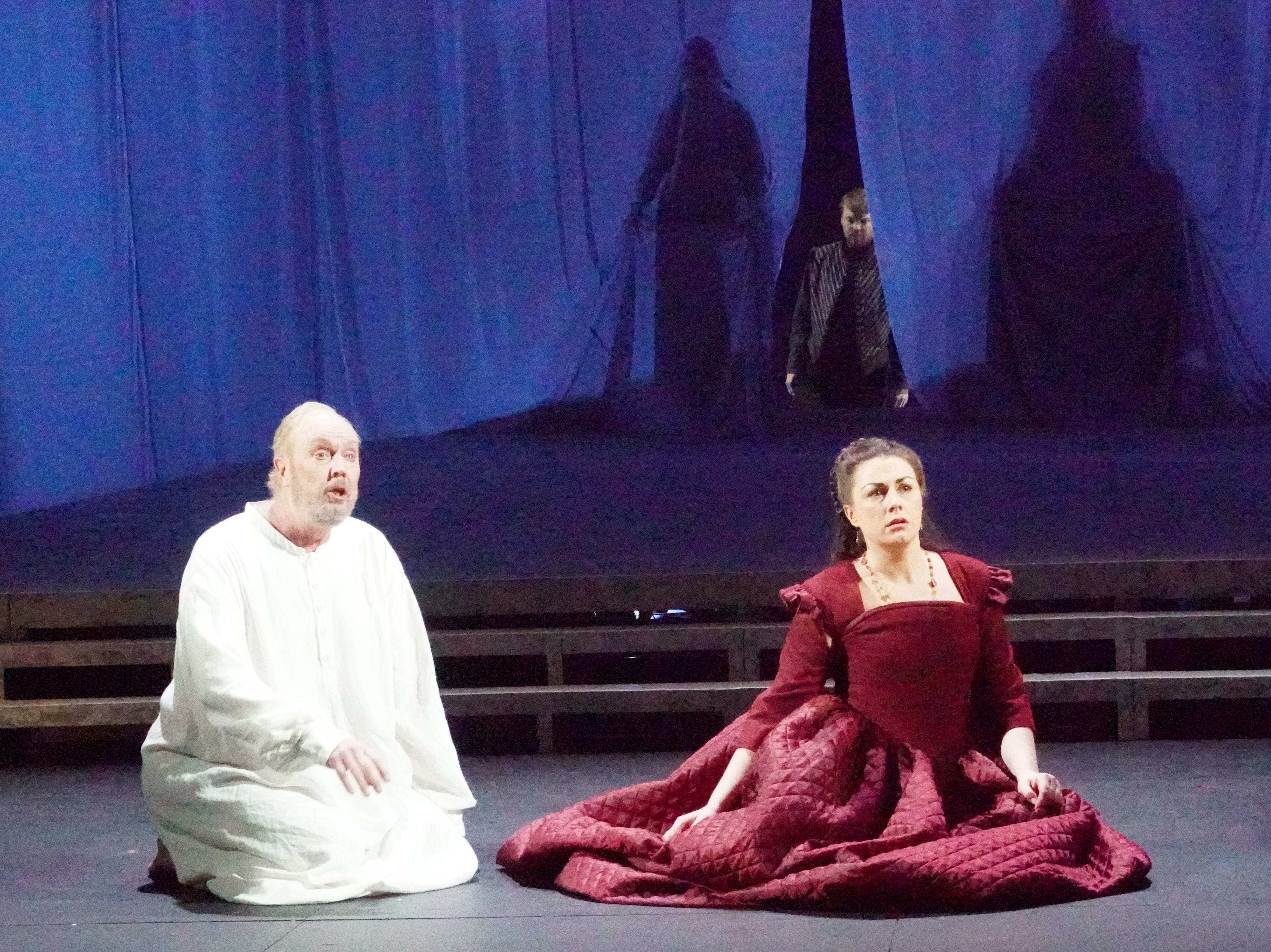 Operakoret syntes mye i kulissene når de ikke hadde rollen som mobb og begravelsesfølge. Jeg vil fremheve hvor mektig det blir når de som kor synger alene, eller sammen med solistene. I de første scenene i første akt var koret veldig tilstede, og hadde mye koreografi i måten de beveget seg på scenen.