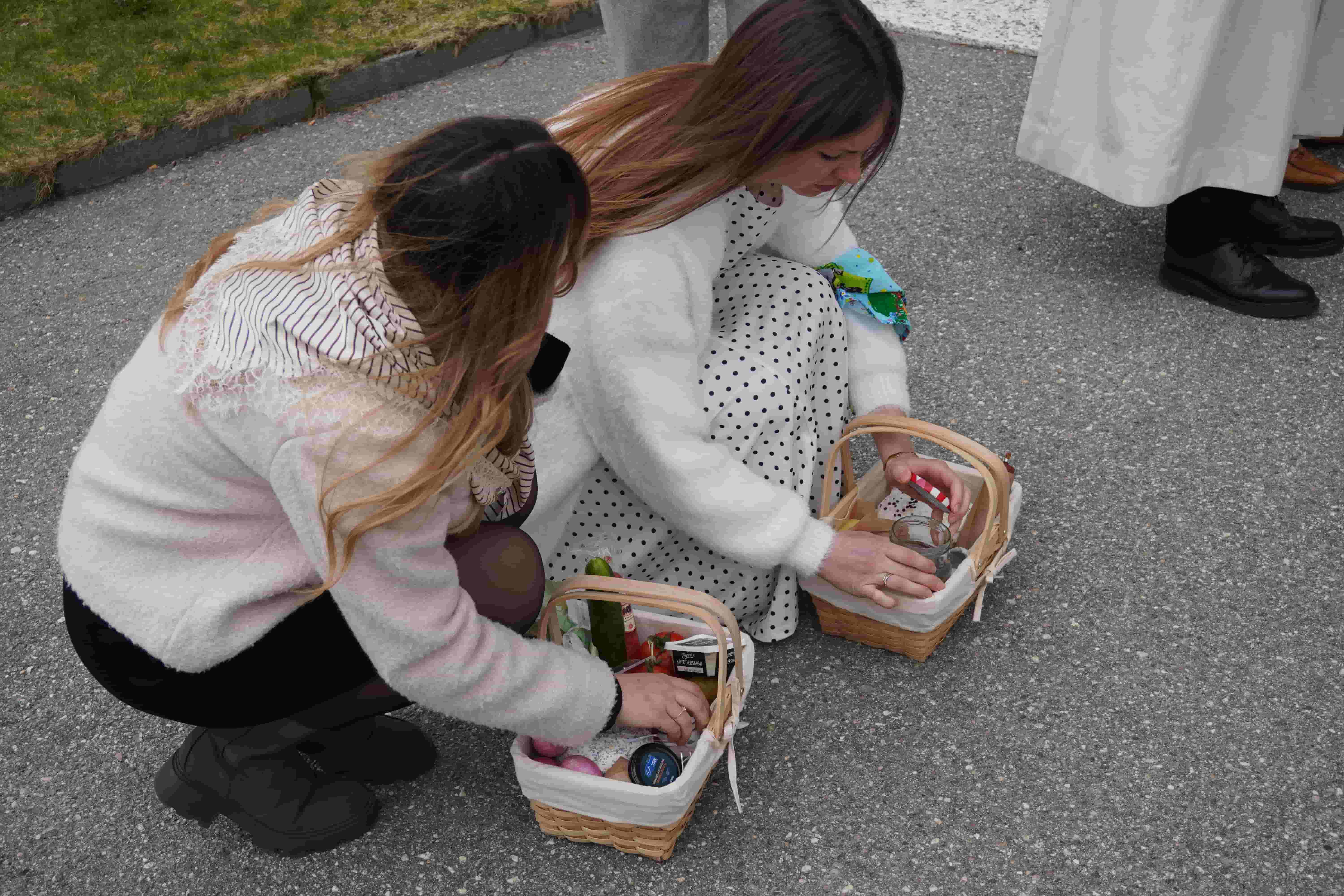 Etter høymessen ble handlingen flyttet ut av kirkerommet og under åpen himmel. Kurver fylt med mat bæres frem: malte egg, brød og grønnsaker. Prosten velsigner innholdet som er en del praksisen av ukrainsk påsketradisjon, der maten som skal spises i høytiden bringes til kirken for velsignelse. Handlingen markerer overgangen fra faste til fest, men har også en videre betydning.