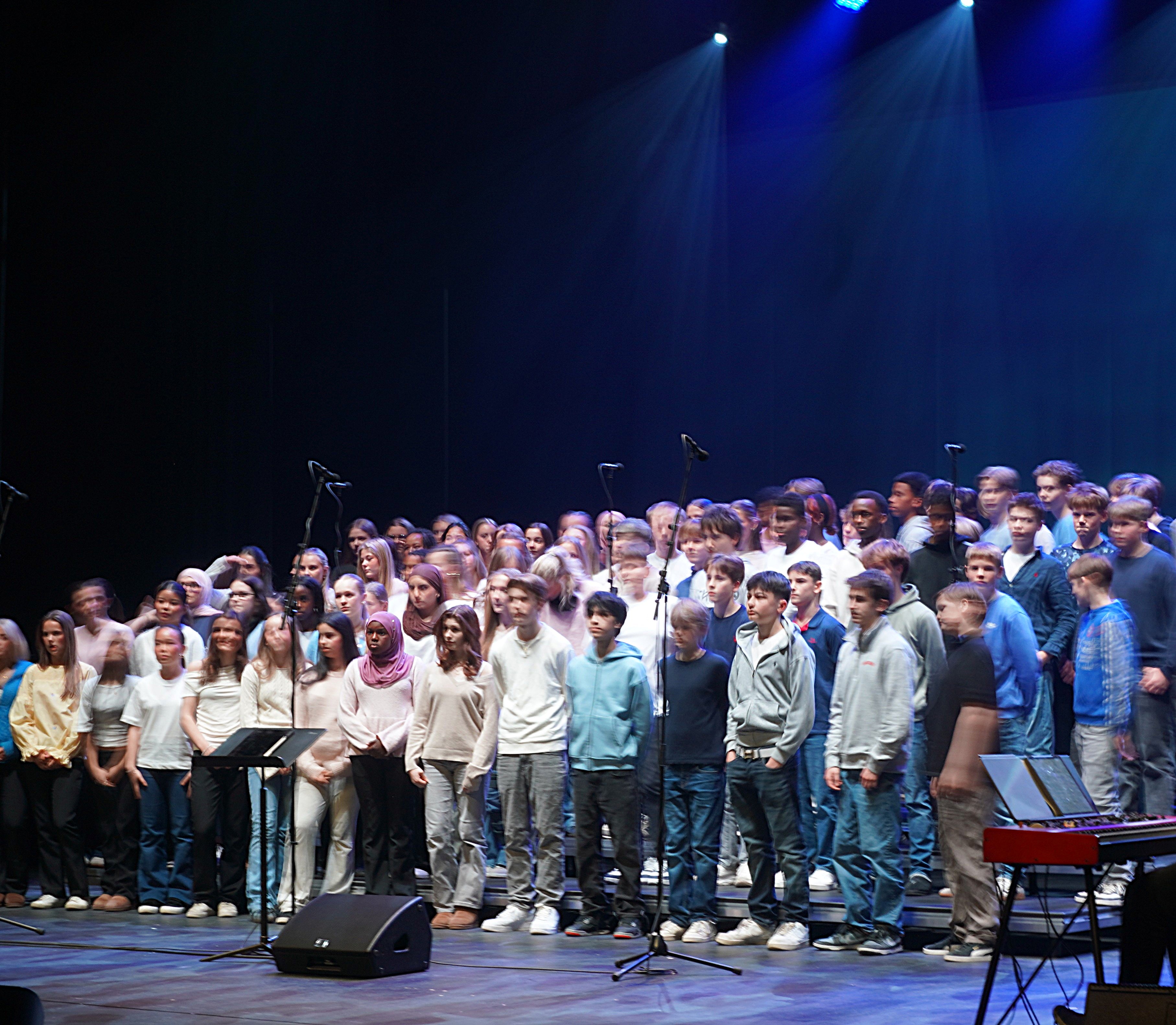 Arrangementet gikk over i et kor prosjekt i samarbeid med kulturskolen, der elevene fremførte kjente sanger som «Fix You» av Coldplay og «Lean On Me» av Bill Withers. Den felles allsangen av «Don’t stop belivin’» av Journey ble en sterk avslutning, som samlet hele trinnet i en feiring av fellesskap og samhold.