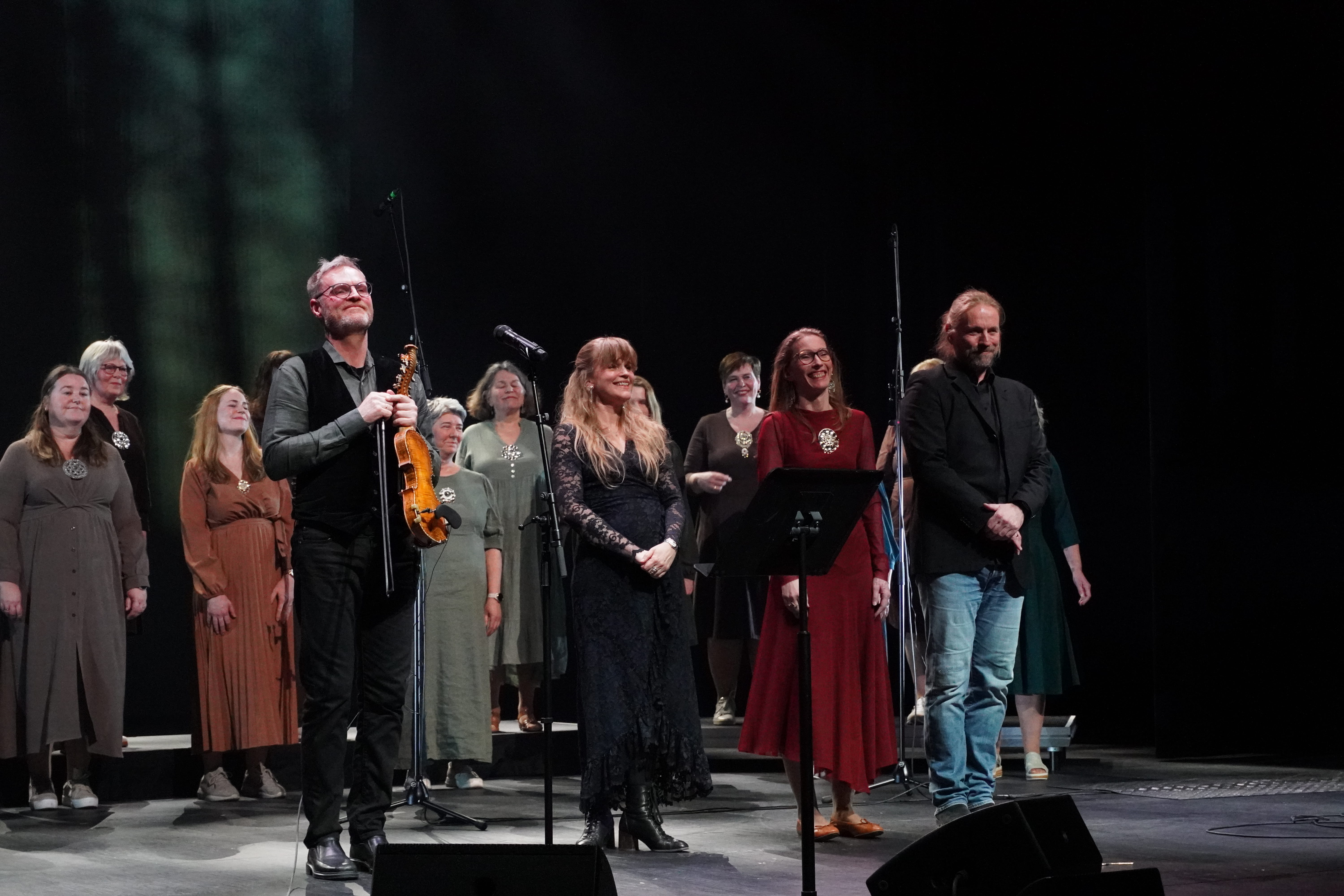Gunnhilds storebror Sturla Eide og Øystein Sandbukt bidro på fele og gitar, og sammen skapte de en harmonisk helhet. Med Straumsnes Songlag og vokalgruppa Røyst i ryggen, ble forestillingen en sammen smelting av stemmer og klanger som ga liv til de folkelige tradisjonene.