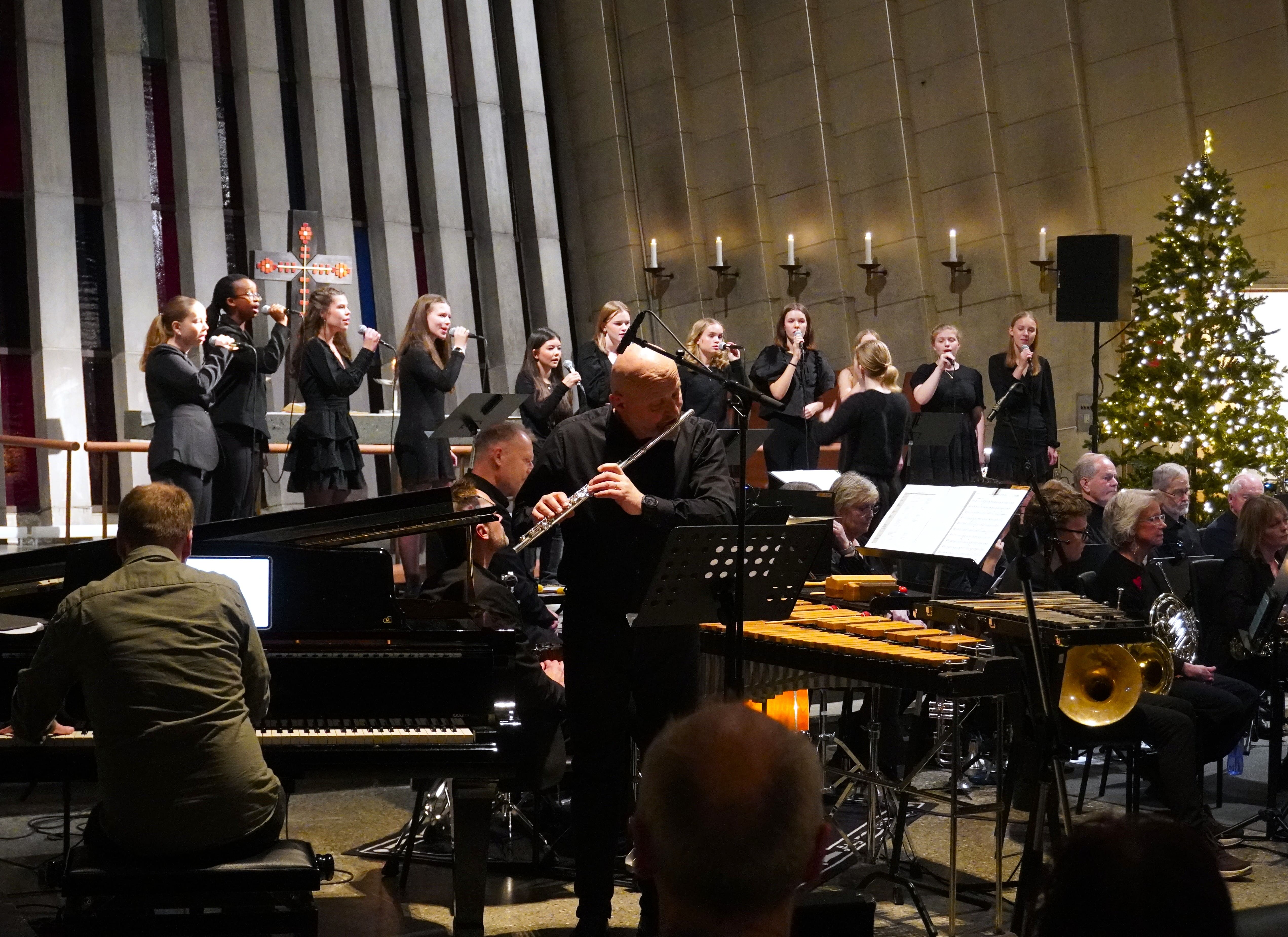 Vi kommer videre til kveldens første allsang. Å kimet det gjorde det, kirkerommet synger alltid bedre med når et kor er med som opp-sangere. Det blir en fyldigere og bedre klang. Vi går over i «Walking in the air». Den handler om en snømann og en gutts magiske flytur til Nordpolen. Her løfter kor og orkester oss opp og løfter kirkespiret litt. Dette er drømmende vakkert.